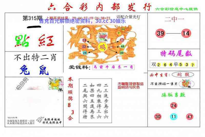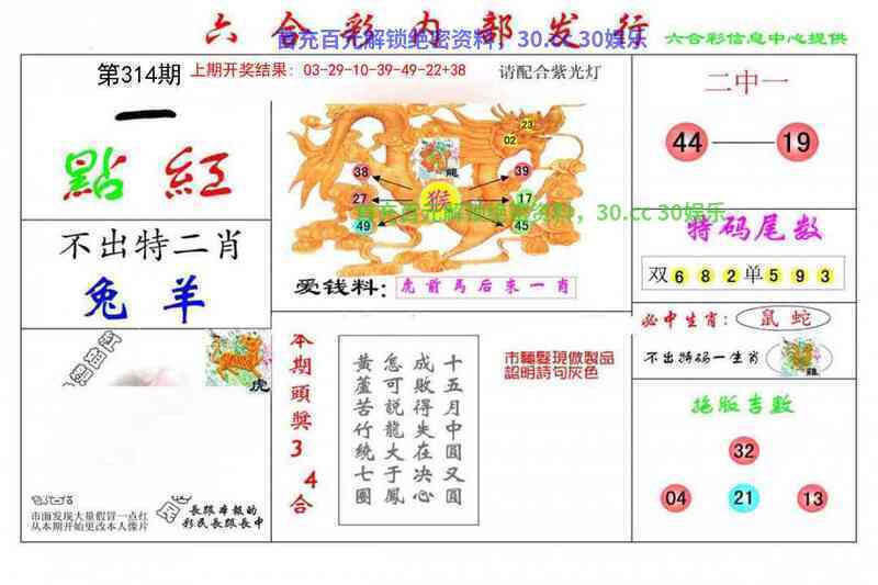 | 315期★三行中特★(火水木)开:虎04错 |